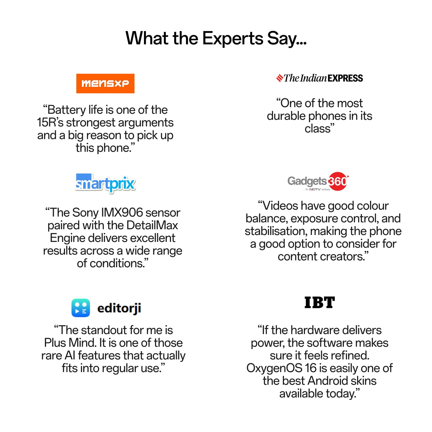 - Ultra Clear Photography with DetailMax Engine. – The OnePlus 15R’s camera is powered by our most advanced computational photography engine. Pixel-perfect detail, expansive vistas, and crystal-clear portraits breathe with life.